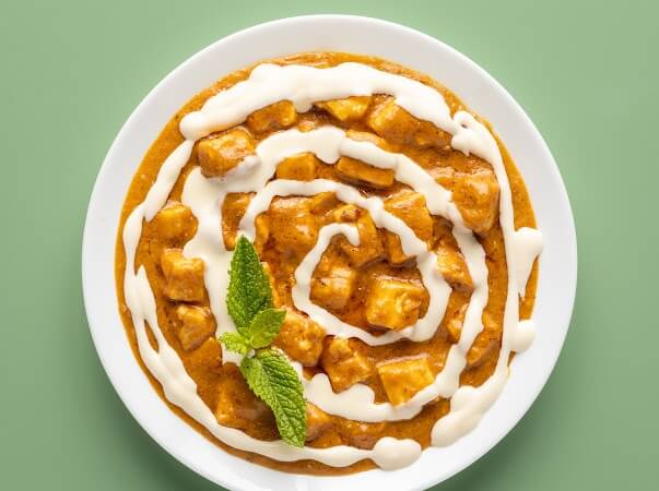 Contains (Dairy) Luscious cubes of cottage cheese simmered in a velvety tomato and creamy sauce, fragrant with aromatic spices.